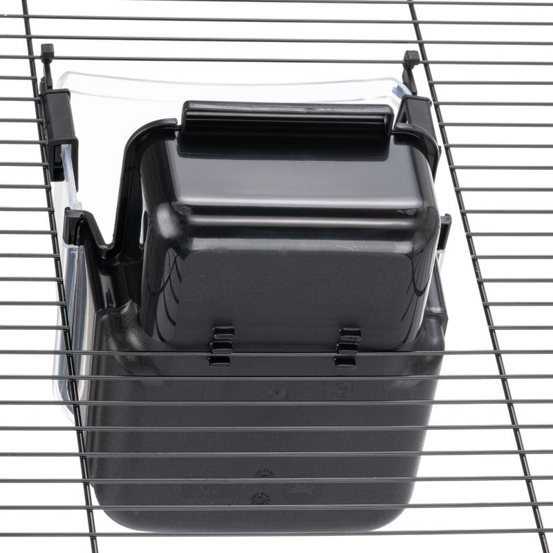 This spacious bird bath, suitable for parakeets and small parrots, fulfills their natural need for cleanliness. The height adjustment system allows easy adaptation to most budgie cages, whether mounted inside or outside. The transparent protective cover keeps water splashes at bay, offering an unobstructed view of your bathing birds.