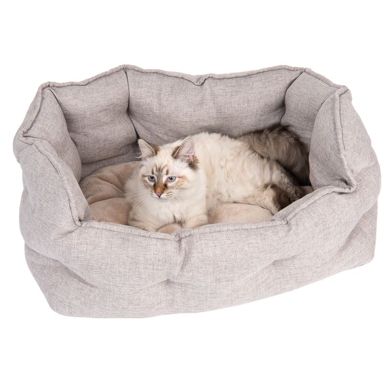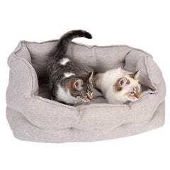 Crafted with a robust natural linen effect, this cat bed boasts a stable base equipped with anti-slip knobs for added security. The stylish border stitching adds a touch of elegance to your home. The Modern Living Batumi Cat Bed is not just a piece of furniture; it's a statement in comfort and style.