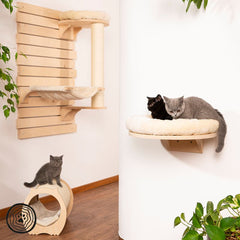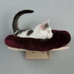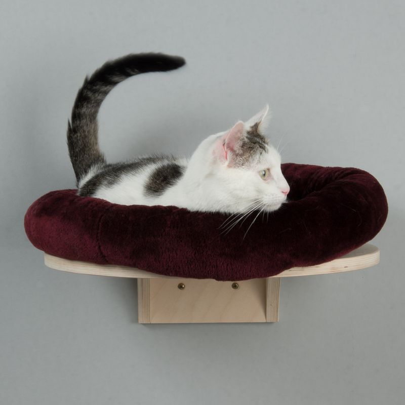 Tips for fixing to the wall: Check that the condition of the wall in the desired place is suitable before affixing the cat bed to the wall. Materials for mounting are not included. We recommend that you purchase screws and wall plugs that are specifically designed to suit your wall from a specialized shop. Use special wall plugs and screws for concrete, hollow walls or plasterboard. Check the stability of the cat bed before allowing your cat to use it. Check the stability regularly and tighten the screws when needed. Please note: This product is intended for indoor use only. Please note: Make sure you attach the fleece side of the bed to the Velcro fastener. Keep in mind that you may need to turn the bed over if the plush is on the bottom.