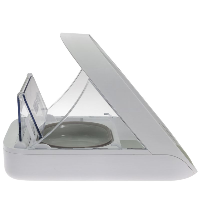 It's easy to set up - scan and store up to 32 individual microchip numbers. The lid opens only for authorized pets, closing automatically when they finish. Bowls are designed to keep food fresher for longer, and an integrated mat maintains a clean feeding area.
