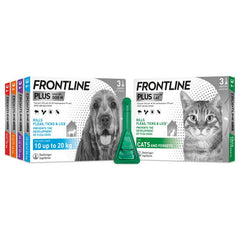 The easy application of 1 pipette at the base of your pet's neck, coupled with its vet strength formula, makes FRONTLINE® Plus Spot On a convenient and efficacious choice. This AVM-GSL veterinary product ensures long-term protection without the need for a prescription.