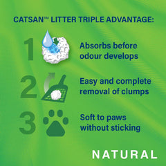 Catsan Natural is an extremely absorbent clumping litter made from 100% natural pure plant fibers. It is ideal for all environment-conscious cat owners, as the litter is completely biodegradable. Both you and your cat will benefit from the strong odor-binding properties of this natural litter. Unpleasant smells are immediately encased, as the Catsan Natural forms quick, strong clumps as soon as your cat has paid a visit.