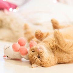 The little unicorn has a pink mane and tail and cute little ears and eyes. It will enchant you and your cat. You can relax and enjoy watching your cat play with this plush toy – batting it about, carrying it and biting, or simply enjoying a cuddle with it. It is exactly the right size for a cat to hold between its front paws, whilst scratching it with its hind paws. Aumüller is a German manufacturer of pet toys. They pride themselves on the quality of manufacturing and detail that is put into their products. This toy has been made to high-quality standards to ensure that the seams remain secure and no small parts come loose that your cat might swallow.
