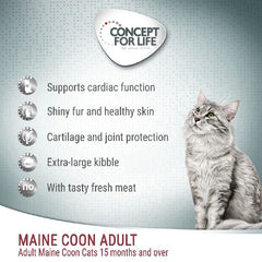 The Concept for Life Maine Coon Adult dry cat food is formulated for the nutritional needs of adult Maine Coons over 15 months. These gentle giants have specific requirements due to their size and breed characteristics. The food is rich in natural glucosamine, chondroitin sulphate, and Vitamin C to maintain bone, cartilage, and joint health.