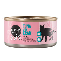 Cosma Asia's wet cat food is a culinary masterpiece, crafted with tender meat, delicate fish, or succulent seafood in a delectable jelly. Each variant boasts two or more meat or fish protein sources and a touch of rice, providing a complete, balanced diet.