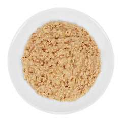Chicken with Tuna: Chicken (46%), rice (6%), cheese (5%), tuna (4%), sunflower oil (3%), chicken liver (1%), powdered egg (0.3%), tuna stock (34.7%) Tuna with Aloe Vera: Tuna (46.9%), rice (6%), cheese (5%), aloe vera (4%), sunflower oil (3%), fish stock (2.7%), powdered egg (0.3%), water (32.1%)