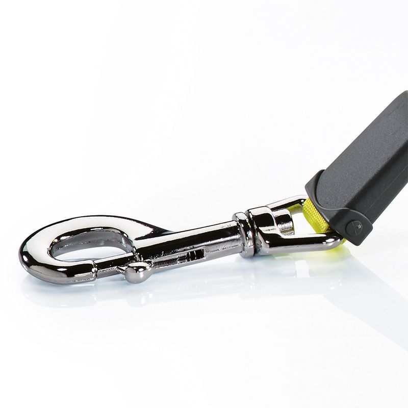 Designed with safety in mind, the lead remains taut, preventing it from dragging on the ground. The neon yellow color enhances visibility in fading light. The product's excellent workmanship, including a chrome-plated snap hook, ensures long-lasting use. Handmade in Germany, this leash meets high-quality standards.