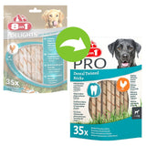 8in1 Pro Dental Twist Sticks make dental care a delight for your dog. These twisted chew sticks are not just delicious – infused with chicken meat and teeth-cleaning minerals, they boast an anti-plaque formula for healthier gums. Crafted for smaller...