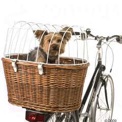 Introducing the Aumüller Bicycle Basket with Protective Wire, a premium pet carrier designed for your cycling adventures. Crafted from high-quality European wicker, this handwoven basket ensures your pet's safety and comfort while you enjoy the ride together.