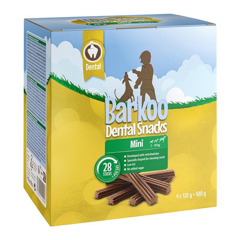 Barkoo Dental Snacks combine dental cleaning with chewing fun! Choose from two saver packs with either 28 or 56 of these tasty treats that help to improve your dog’s dental hygiene. Perfect for small, medium and large breeds of adult dogs, chewing on these treats is a more fun and comfortable way of keeping your dog’s teeth clean. The unique eight-point star shape and special texture help to reduce plaque formation on both your dog’s teeth and directly around the gum line. When fed as a daily supplement, these snacks help to strengthen gums and minimize the risks of plaque build-up.