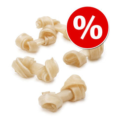 Barkoo Knotted Bones are made only from natural beef rawhide and available in the following sizes and quantities: