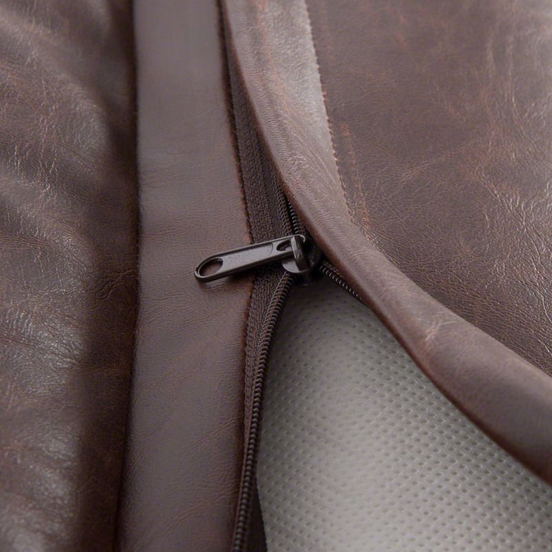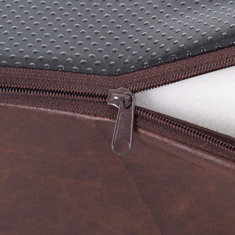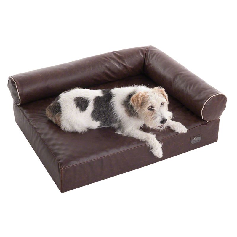 The orthopedic mattress, comprising 1/3 memory foam, molds to your dog's body shape, relieving pressure on joints and ensuring a cozy, warm sleep. Ideal for older dogs or those with joint issues, the raised, padded edge provides a perfect headrest. The brown surface, with its marbled structure, is not only comfortable but also protects against mites and fleas.