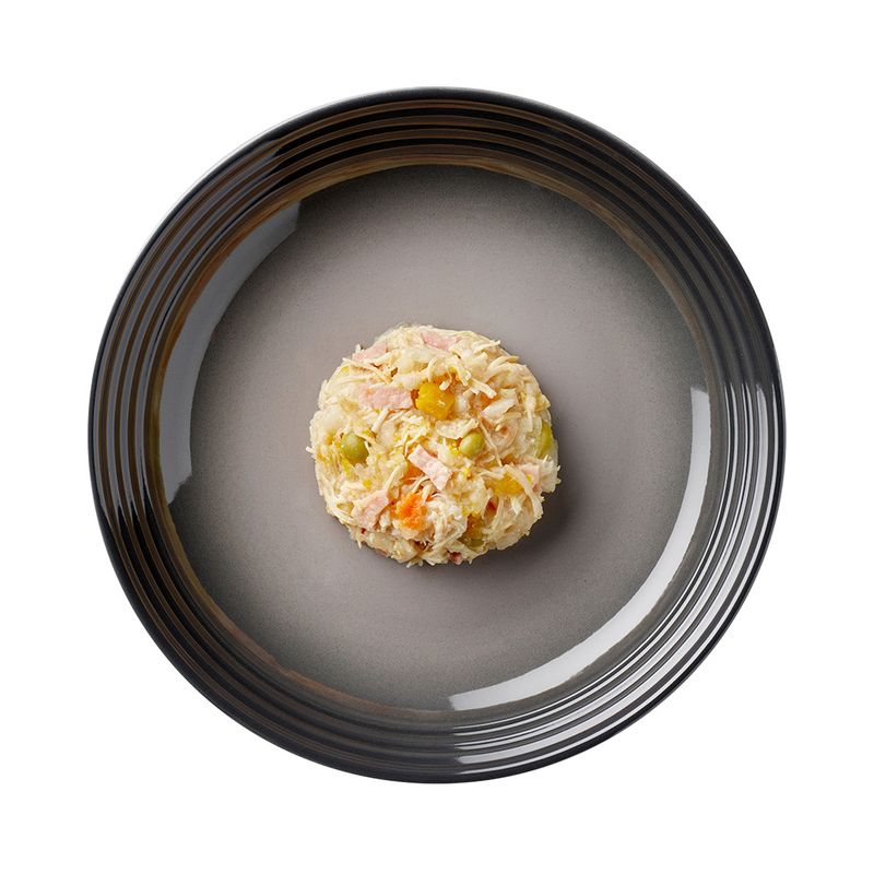Ingredients: Finest Selection: Chicken Breast with Duck: Chicken breast (55%), duck (7%), vegetable gelling agent. Chicken Breast with Tuna & Vegetables: Chicken breast (55%), tuna (3%), pumpkin (2%), carrot (2%), vegetable gelling agent. Chicken Breast with Garden Vegetables: Chicken breast (55%), pumpkin (2.5%), carrot (2.5%), green peas (2%), vegetable gelling agent. Deluxe Collection: Chicken: Chicken (55%), vegetable gelling agent. Chicken with Salmon & Veg: Chicken (45%), salmon (10%), carrot (2.5%), pumpkin (2.5%), green peas (2.5%), vegetable gelling agent. Chicken with Ham & Veg: Chicken (45%), ham (10%), carrot (2.5%), pumpkin (2.5%), green peas (2.5%), vegetable gelling agent. Meat Selection: Chicken Breast with Duck: Chicken breast (55%), duck (7%), vegetable gelling agent. Chicken Breast with Salmon & Vegetables: Chicken breast (45%), salmon (10%), carrots (2.5%), pumpkin (2.5%), green peas (2.5%), vegetable gelling agent. Chicken Breast with Ham & Vegetables: Chicken breast (45%), ham (10%), carrots (2.5%), pumpkin (2.5%), green peas (2.5%), vegetable gelling agent. Additives per kg: According to the manufacturer this product contains no additives.