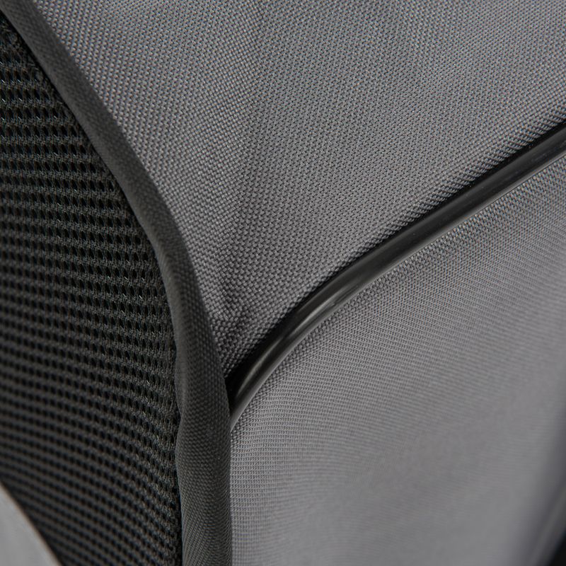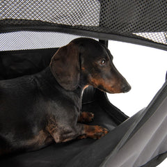 Made of light yet hard-wearing material, this travel-friendly box ensures durability and is easy to clean. The large entrance, equipped with a zip, allows easy access for your pet, while net panels on three sides provide ample air circulation and a view of the surroundings. The covered roof protects your pet from direct sunlight, and the metal rods inside ensure the box holds its shape.