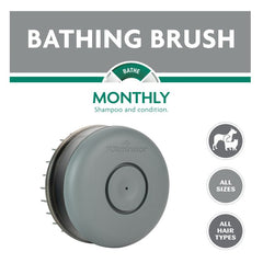 With its round, lightweight, and easy-to-grip design, the FURminator Bathing Brush provides a comfortable grooming experience. The grey plastic brush with a 50ml fill capacity is not only practical but also promotes a glossy coat. Remember to use it once a month with wet fur for best results.