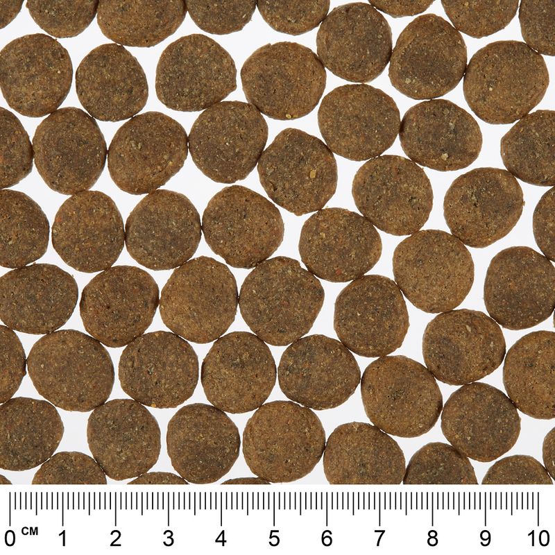 Ingredients: 28.6% fresh beef, 14.9% beef protein (dried), 14.5% potato flakes, 12.1% lentils (dried), 9.2% beet pulp (desugared), 8.1% beef fat, 7.8% potato starch, 2.2% carrots (dried), 2.1% sunflower oil, 0.5% brewer’s yeast extract (hydrolysed and dried) Additives per kg: Nutritional additives: Vitamin A 13,900 IU, vitamin D3 1,390 IU, vitamin E 150 IU, vitamin C 19mg, vitamin B1 7mg, vitamin B2 (riboflavin) 10mg, vitamin B6 (pyridoxine hydrochloride) 4mg, vitamin B12 56mcg, niacin 42mg, calcium-D-pantothenate 19mg, folic acid 1mg, biotin 371mcg, choline chloride 750mg, copper (copper(II) sulphate pentahydrate) 12mg, zinc (zinc sulphate monohydrate) 123mg, iron (iron(II) sulphate monohydrate) 70mg, manganese (manganese (II) oxide) 26mg, iodine (potassium iodide) 1.2mg, selenium (sodium selenite) 0.2mg Technological additives: Tocopherol-rich extracts from vegetable oils (delta rich). Energy/kg: ME (FEDIAF, 2019) 15.7 MJ/3760 kcal
