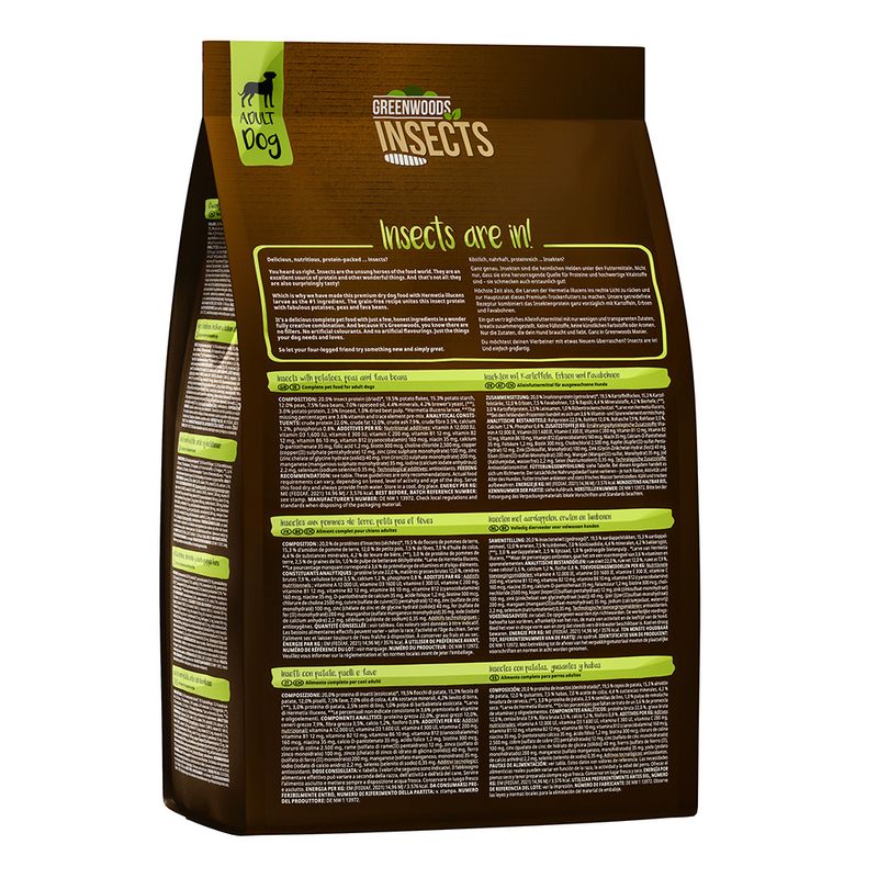 Insects are in! dry dog food is available in 1.5kg, 6kg, and 12kg packs as well as 2 x 12kg economy packs.