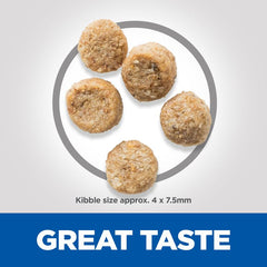 The kibble, tailored for smaller jaws, offers a delightful flavor and a feeling of satisfaction after each meal. Hill’s Science Plan Mature Adult 7+ Light Small & Mini with Chicken prioritizes your dog's health with L-carnitine for heart support, omega-6 fatty acids, and vitamin E for a radiant coat.
