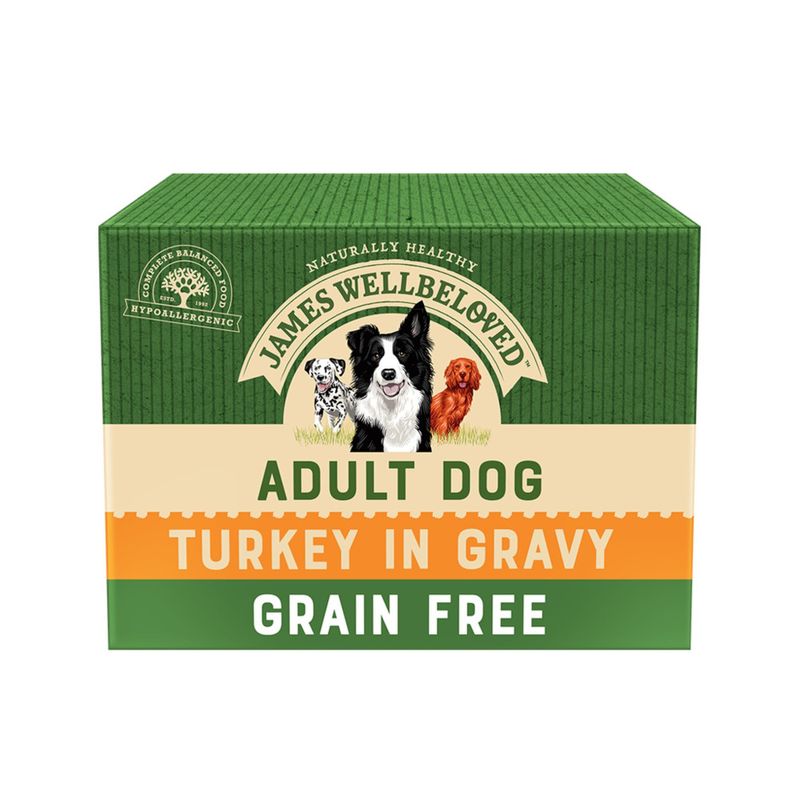 Enhance your dog's well-being with James Wellbeloved Adult Grain Free Pouches - Turkey with Vegetables.