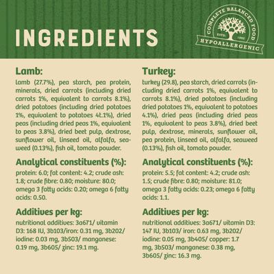 Enriched with natural ingredients, including iodine-rich seaweed and antioxidant-packed cranberry extract, our pouches go beyond flavor, supporting your dog's overall health. The inclusion of omega-3 and -6 fatty acids promotes a lustrous coat and healthy skin.