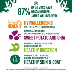 James Wellbeloved Adult Superfoods - Lamb with Potato & Chia is a complete dry food for adult dogs, naturally hypoallergenic and made with 100% natural lamb as a selected source of protein, combined with health-promoting superfoods. It contains sweet potato...