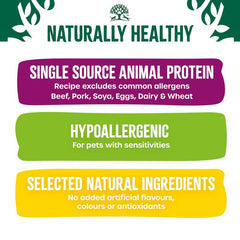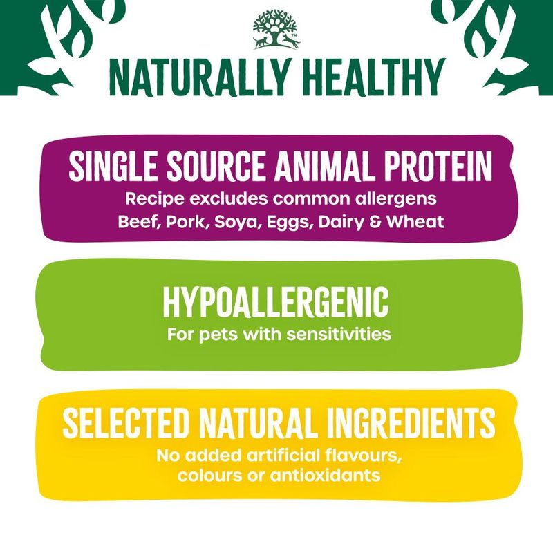 • Hypoallergenic recipe: no troublesome ingredients that could exacerbate skin or digestive conditions