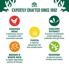 James Wellbeloved Puppy Chicken & Rice is a thoughtfully crafted, naturally healthy dry dog food for pups up to 6 months. Specially designed for smaller mouths, it boasts single-source animal protein, easily digestible rice, and natural ingredients like chicory extract and seaweed. Free from common allergens, it supports your pet's well-being without artificial additives.
