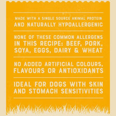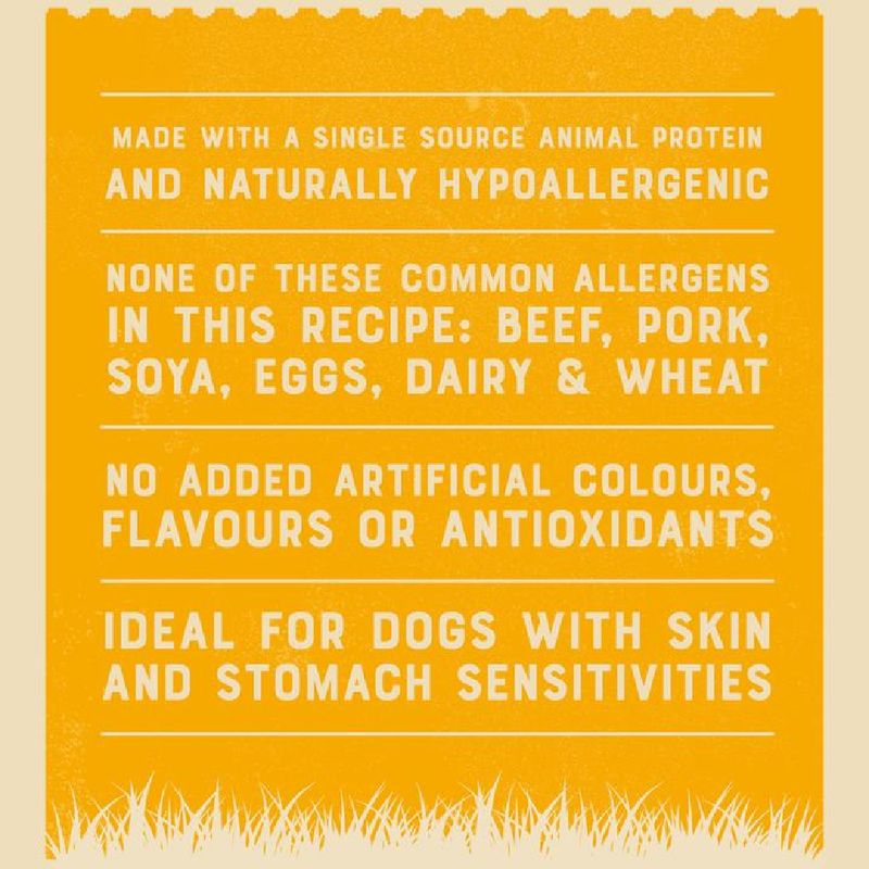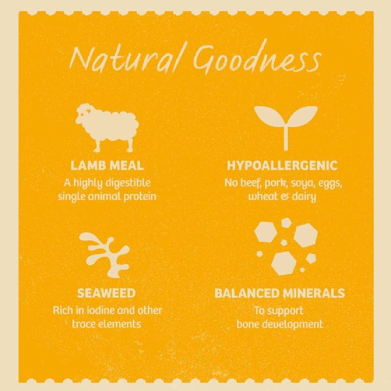 Our Lamb with Rice & Vegetable formula goes beyond basic nutrition. Extra ingredients like alfalfa, seaweed, and linseed are included to aid digestion and soothe itchy coats. Plus, rest assured that our wet dog food contains no added artificial colors, flavors, or preservatives. We've omitted beef, pork, wheat, wheat gluten, dairy products, egg, and soya, ensuring a hypo-allergenic option for your furry friend.