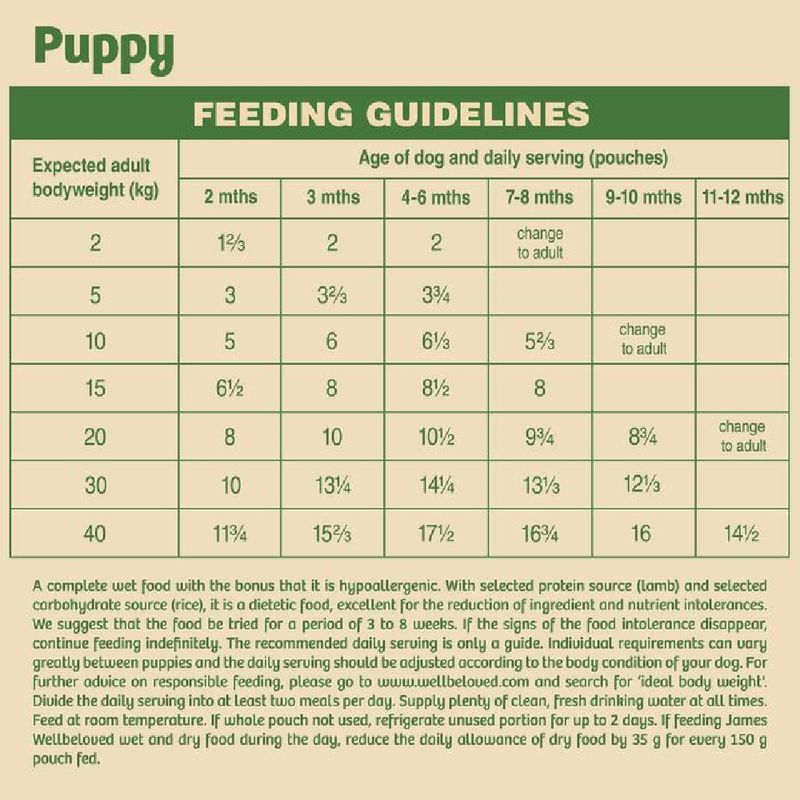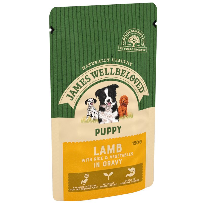 James Wellbeloved understands that your puppy deserves the best start in life. Our wet pouches, crafted to the same high standards as our dry food, feature a single source of meat protein paired with easily digestible rice and vegetables. This thoughtful combination minimizes the risk of food intolerances in your young companion.
