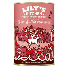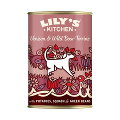 Feeding recommendations: Lily's Kitchen Venison & Wild Boar Terrine is a complete food for adult dogs. Feed once or twice per day and ideally serve at room temperature. Fresh drinking water should always be made available. See pack for full feeding instructions. Move your dog gradually onto this food over 4-5 days, to avoid any stomach upsets.