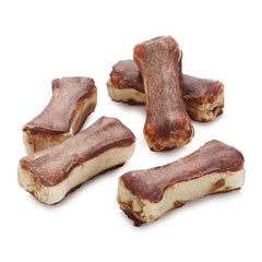 Lukullus Dog Bones are exquisite-tasting dog chews. They are a tasty dog treat that helps care for teeth and gums, keeping your dog busy for ages. These bones are entirely natural, made from air-dried pressed rawhide and tasty chicken, beef, duck, lamb, or fish, shaped like a sandwich in bone form. Chewing is a healthy activity for all dogs, improving mouth and dental hygiene. Lukullus Dog Bones are low in fat (less than 3.5% fat) and popular, even with choosy dogs, thanks to the high meat content. The consistently high quality is ensured by premium ingredients and regular inspections.
