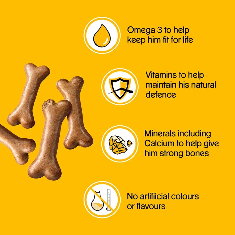 Feeding recommendation: Pedigree Biscrok Gravy Bones are a supplementary dog food.