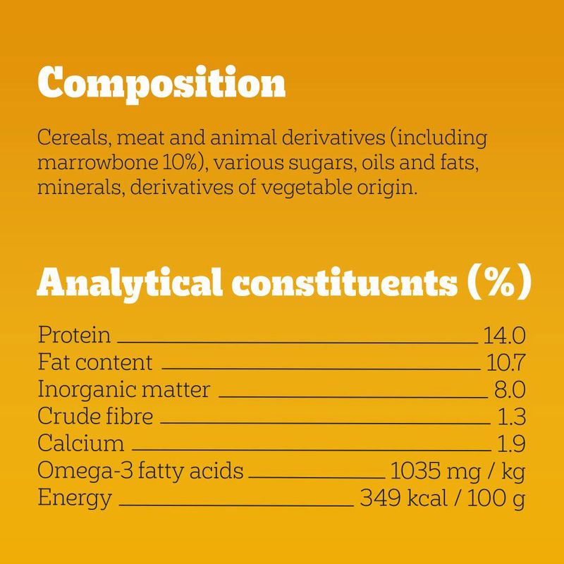 The Pedigree Markies are more than just tasty; they're a powerhouse of beneficial ingredients promoting health and vitality. Packed with omega-3 fatty acids, these treats ensure your dog's skin stays healthy and its coat gleams. Vitamins and minerals fortify the immune system, contributing to your pet's overall well-being. Plus, they're crafted without artificial colors or flavors, so you can pamper your pup guilt-free.