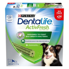 Something delightful for your furry friend's dental care! Introducing Purina Dentalife ActivFresh Daily Dental Care Snacks tailored for Medium Breed Dogs. These tasty chews contribute to effective teeth cleaning, reaching hidden areas, and reducing plaque buildup.
