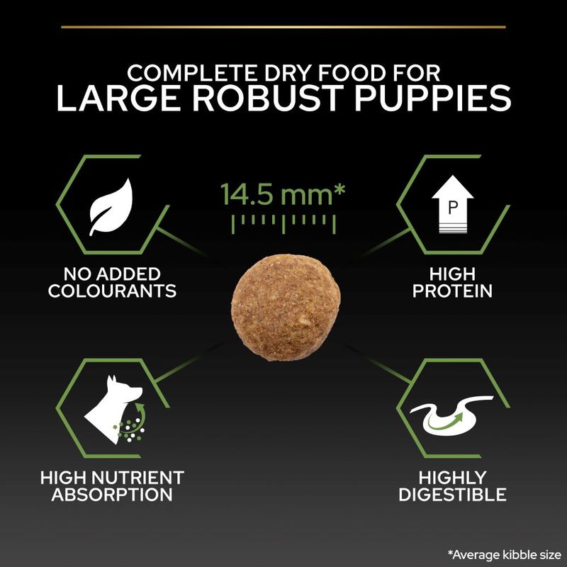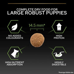This complete food is suitable for daily feeding, free from synthetic coloring, and packaged in a resealable pouch for lasting freshness. Addressing the unique needs of large breeds, PURINA PRO PLAN Large Robust Puppy Healthy Start offers a comprehensive solution for your pup's well-being.