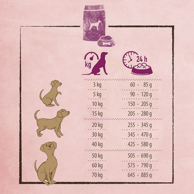 Dog's weight in kg | Daily amount in g |