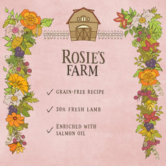 Rosie’s Farm Shepherd's Pie with Lamb adult dry dog food is made with protein-rich fresh meat and seasonal vegetables. We believe your dog deserves properly natural food, containing only top-quality meat – no nasties. Just like your homemade meals, we avoid chemical additives, fillers, or fake flavor enhancers—only whole, natural ingredients treated properly for true flavor. All ingredients are gently cooked for a tasty, satisfying meal. The splash of salmon oil keeps your dog’s coat glossy and skin supple. Spoil your dog with traditionally tasty recipes, grain-free and kind to tummies. Ideal for dogs with nutritional intolerances. Rosie’s Farm food, with delicious fruit & veg, will keep your dog’s tail wagging all day.