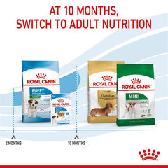 Royal Canin Mini Puppy is a balanced dry food catering to small breed puppies up to 10kg, perfect for ages 2 to 10 months. With omega-3 fatty acids promoting brain development, its specially crafted kibble size and structure suit tiny jaws, easing chewing and aiding dental health.