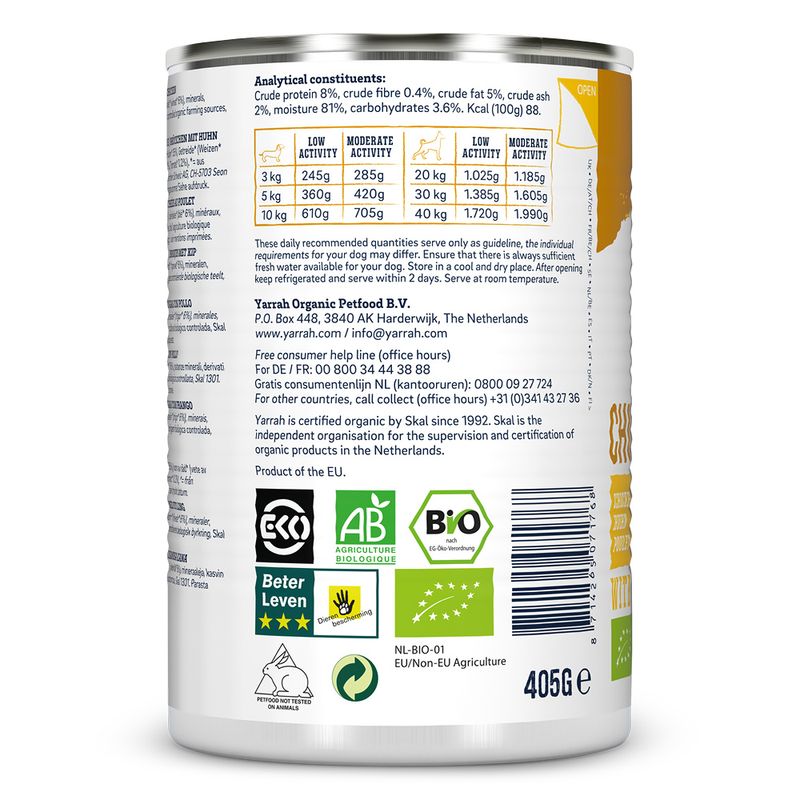 If you're seeking a complete and balanced organic meal that supports your dog's overall health and wellness, Yarrah Organic Chicken Chunks with Organic Nettle & Organic Tomato in Sauce is the ideal choice. Embrace a healthier lifestyle for your pet today.