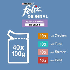 Make every meal memorable for your cat with Felix Original Pouches 40 x 100g – the perfect blend of taste and nutrition.