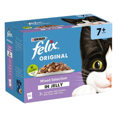 In addition to the aromatic meat and fish components, Felix Senior Pouches are fortified with valuable antioxidants to neutralize free radicals and combat cell aging. The optimized mineral and vitamin quantities contribute to your senior cat's overall well-being. The inclusion of unsaturated omega-6 fatty acids promotes healthy skin and a glossy coat, ensuring your cat looks and feels its best.