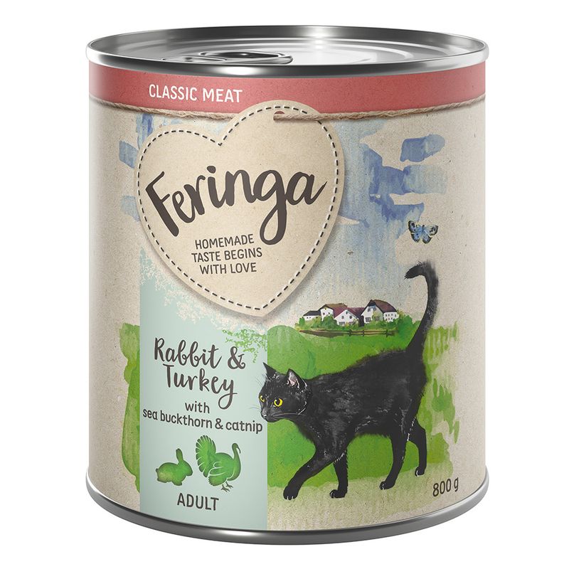 Feeding Recommendation: Feringa Classic Meat Menu is a complete wet food for adult cats. The feeding recommendations are guidelines and should be adjusted to suit your cat's individual needs. Serve at room temperature and please ensure your cat always has fresh drinking water available. Refrigerate once opened.  Rabbit & Turkey