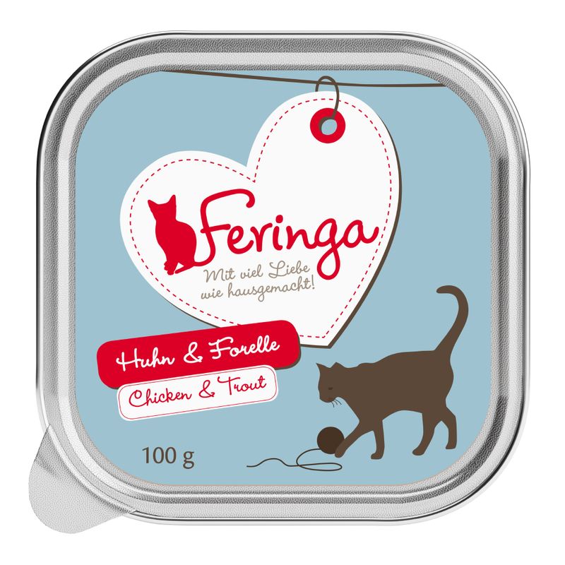 Feringa Trays 6 x 100g are handy trays of high-quality wet food, with natural recipes for your cat. The thoughtful recipe contains high-quality protein combined with delicious vegetables and tasty herbs. The adapted vitamin and taurine content ensures your cat receives all of the key nutrients it needs, while the gentle preparation preserves natural flavor and nutritional value. The practical trays ensure that your cat can always enjoy the full taste experience. After eating, the empty tray can simply be disposed of, without any leftovers leaving unpleasant smells. Feringa wet food is made without any grains, helping to ensure your cat’s digestive system is not overloaded, as it would struggle to cope with large quantities of grain. These Feringa Trays are sure to be a hit with even the most critical cats, with quality as good as homemade!
