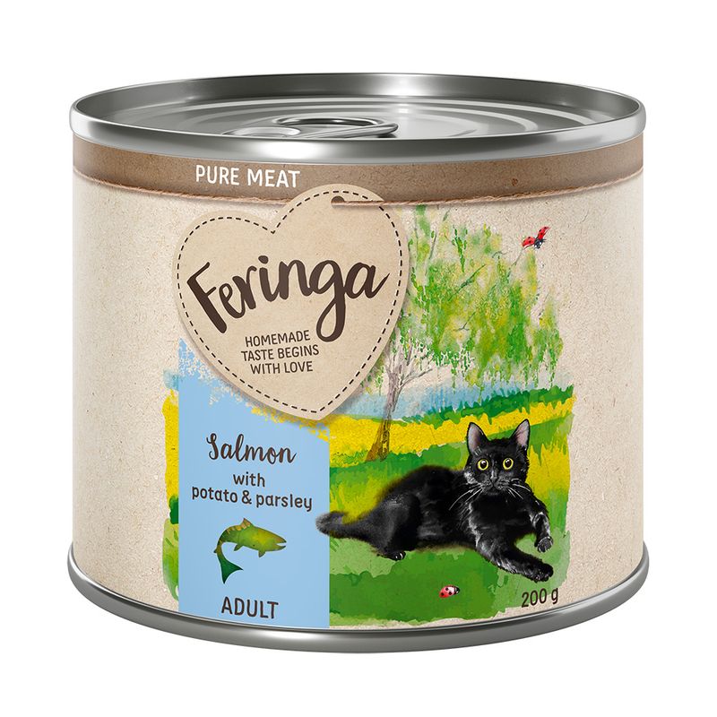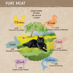 Indulge your cat with Feringa Pure Meat Menu, a premium wet cat food crafted with love and care by a small family business in Germany. This delectable mixed pack, including Chicken with Pumpkin & Catnip, Rabbit with Parsnips & Catnip, Lamb with Potato & Cat Thyme, Salmon with Potato & Parsley, Duck with Cottage Cheese & Valerian, and Veal with Broccoli & Dandelion, promises an authentic taste experience.