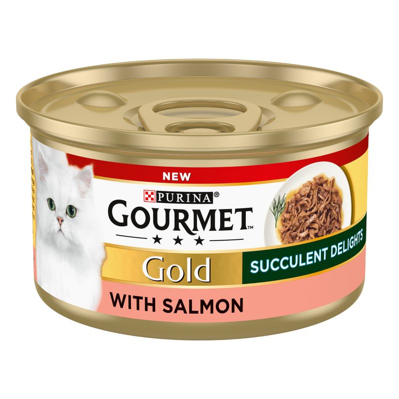 Gourmet Gold Succulent Delights is a meticulously crafted wet food for adult cats. Made with slow-cooked, high-quality ingredients, such as chicken and salmon, it guarantees a refined and delicate taste to satisfy even the most discerning felines.