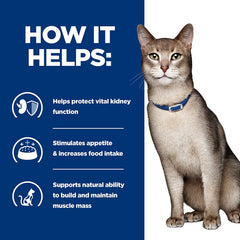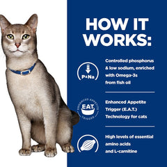 Hill's Prescription Diet Feline k/d Kidney Care is crafted with tender pieces of meat or fish in gravy, specifically tailored for cats combating renal disease. This condition, triggered by various factors, can manifest uncomfortable and even life-threatening symptoms. Sometimes, it surfaces as a secondary effect of other illnesses or reflects your cat's overall health. Some cats, including certain breeds, possess a genetic predisposition to kidney disease. Nutrition plays a crucial role, and symptoms may only become evident when kidney function is significantly impaired. Hill's Prescription Diet Feline k/d Kidney Care highlights:
