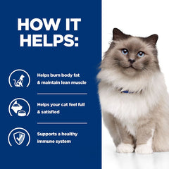 Our Feline r/d Weight Reduction Chicken kibble boasts reduced fat and calorie content, enriched with L-Carnitine to kick-start metabolism and burn fat. With 39% chicken, it supports lean muscle mass maintenance and shows visible results in just 8 weeks, clinically proven for healthy weight loss in 2 months.