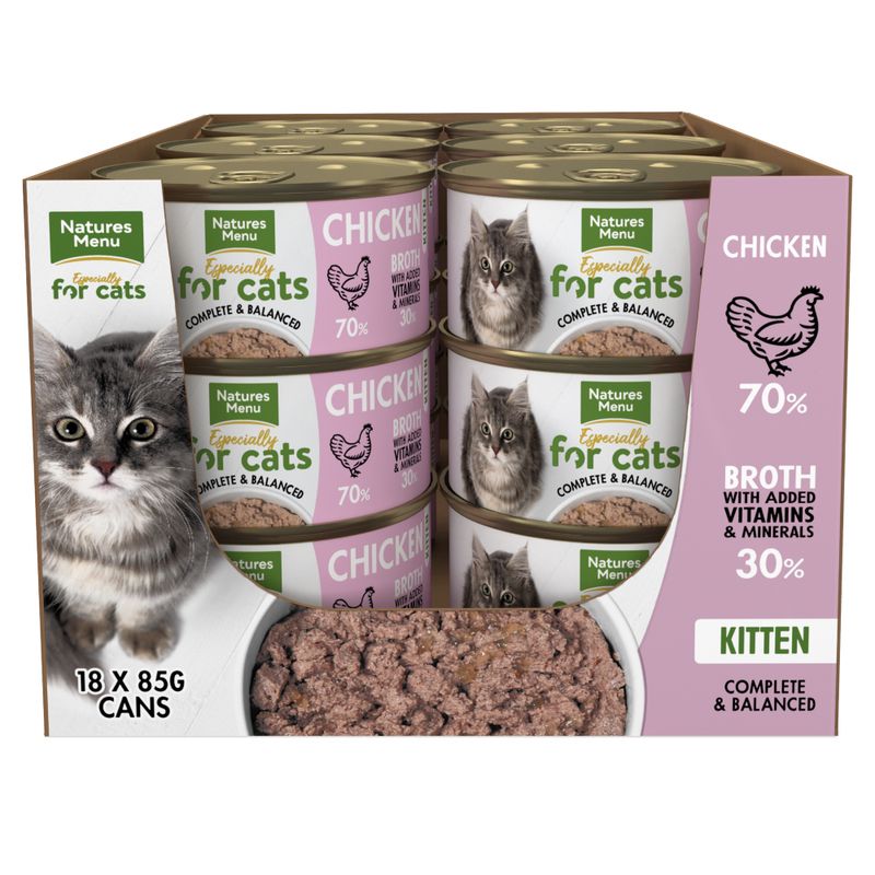 Natures Menu Original Cans Kitten - Chicken undergoes a gentle steam-cooking process, preserving natural flavors and nutritional value. What sets it apart is its grain- and gluten-free composition, making it an ideal choice for more sensitive cats.
