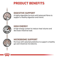 Whether due to illness or surgery, weakened cats need a nutrient-rich diet for a speedy recovery. Royal Canin Veterinary Cat - Gastrointestinal in Gravy is specially crafted to support digestion and optimal nutrient intake, with a high energy content promoting healthy weight gain during convalescence.Royal Canin Veterinary Cat - Gastrointestinal in Gravy contains highly-digestible ingredients in a recipe well-accepted by cats, even those with reduced appetites. It boasts an increased electrolyte content and a balanced mix of fibers for healthy digestion.Royal Canin Veterinary Cat - Gastrointestinal in Gravy at a glance: