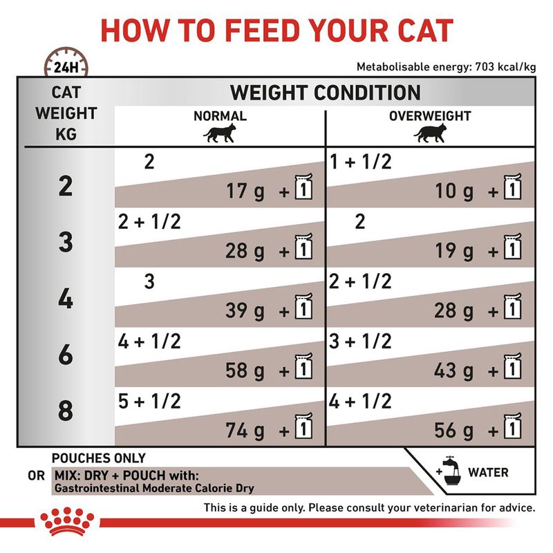 Royal Canin Veterinary Cat - Gastrointestinal Moderate Calorie in Gravy is a complete food for cats.